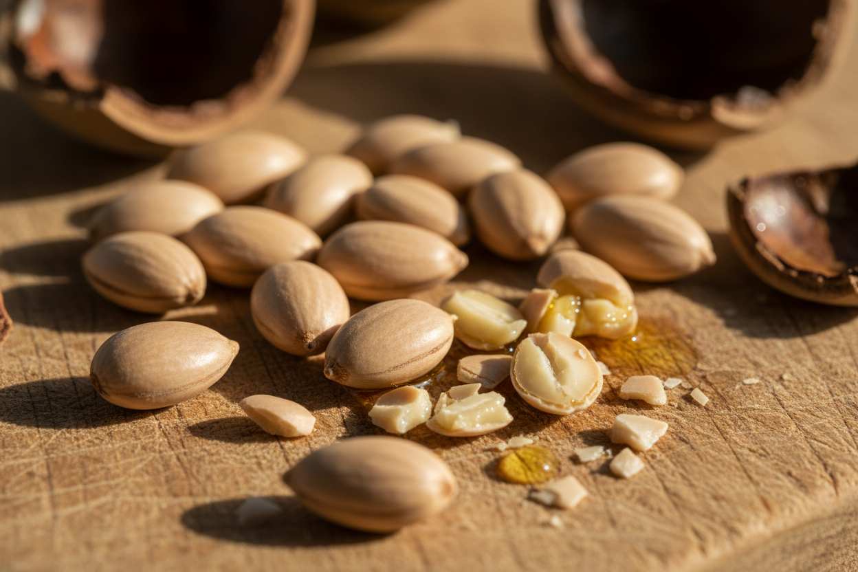 Het hoge gehalte aan linolzuur in amandelolie versterkt de barrièrefunctie van de hoofdhuid en voorkomt vochtverlies in de haarschacht.