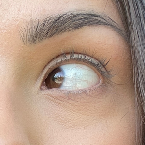 Haal de pad vervolgens voorzichtig van boven naar beneden over het oog. De polymeerbuisjes zullen zacht van de wimpers glijden en op de pad achterblijven. Lukt dat niet direct? Herhaal het proces rustig.